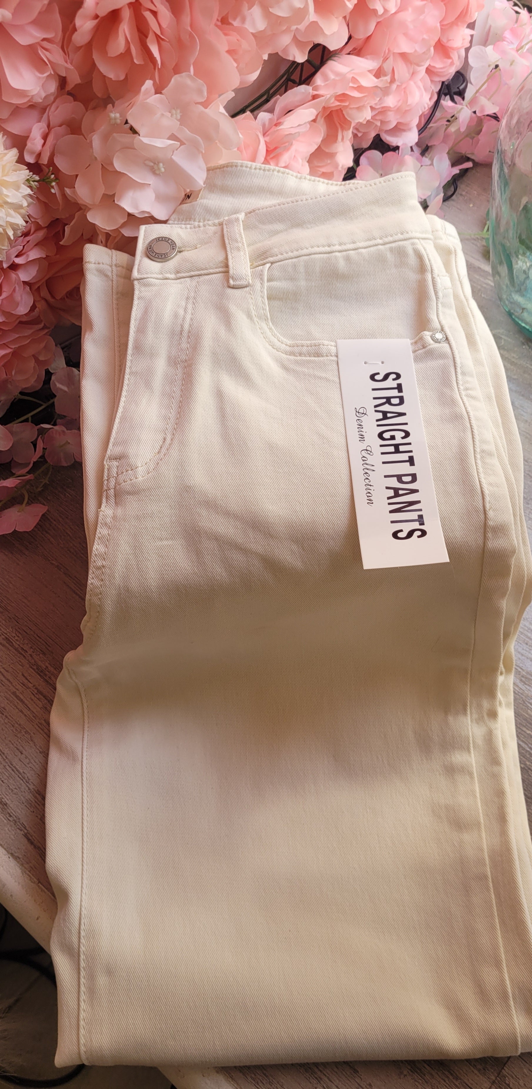 Jeans blanc cassé est une teinte fraîche pour cette période .