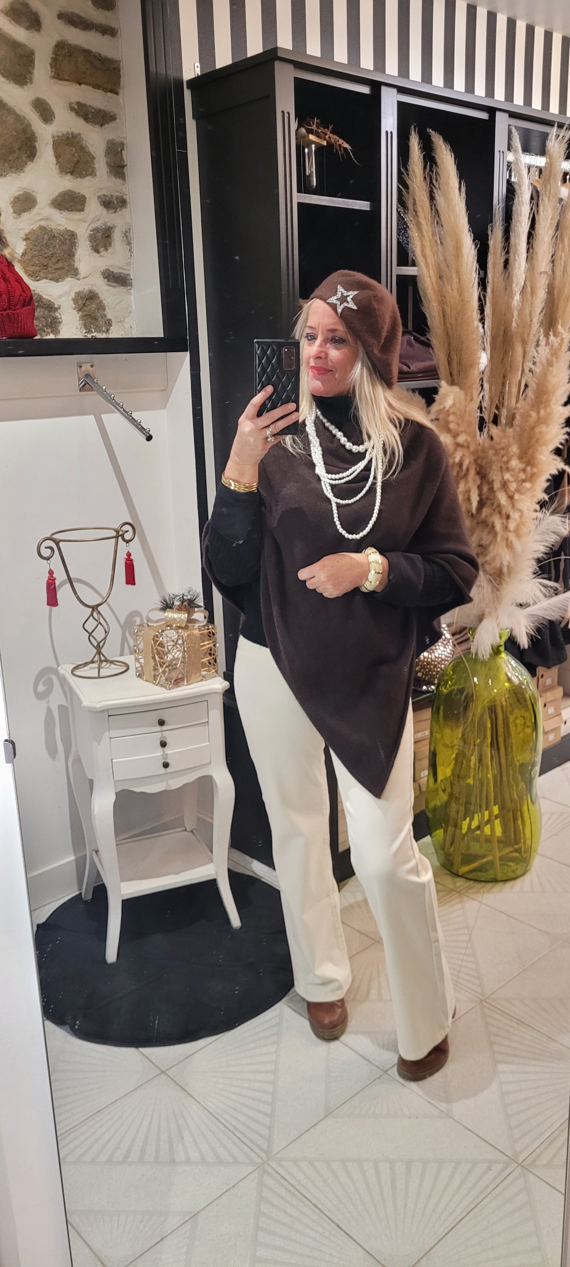 Découvrez le Poncho June en laine marron, une pièce élégante et polyvalente.Ce poncho vous enveloppe de douceur tout en apportant une touche moderne à votre garde-robe. Sa teinte marron intemporelle se marie facilement avec toutes vos tenues, que ce soit pour une journée décontractée ou une soirée chic.